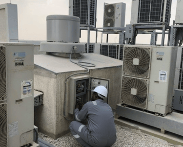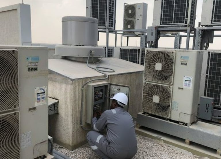 Instalação e manutenção de sistemas de ar condicionado e refrigeração industrial, essenciais para o conforto e operação de edifícios e instalações técnicas.